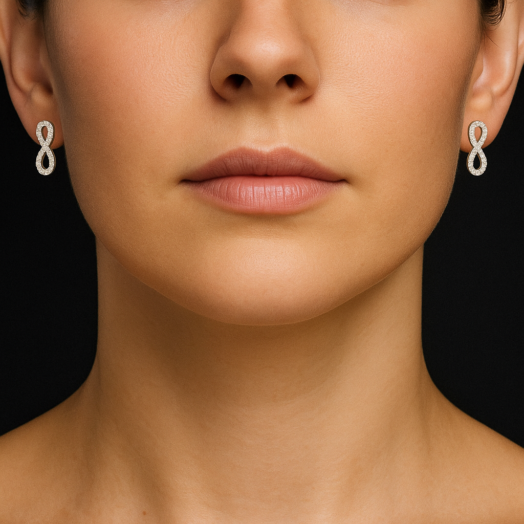 The matching earrings echo the infinity motif, making this set a perfect blend of elegance and versatility. Lightweight and comfortable, itβs ideal for daily wear or as a meaningful gift for someone special.